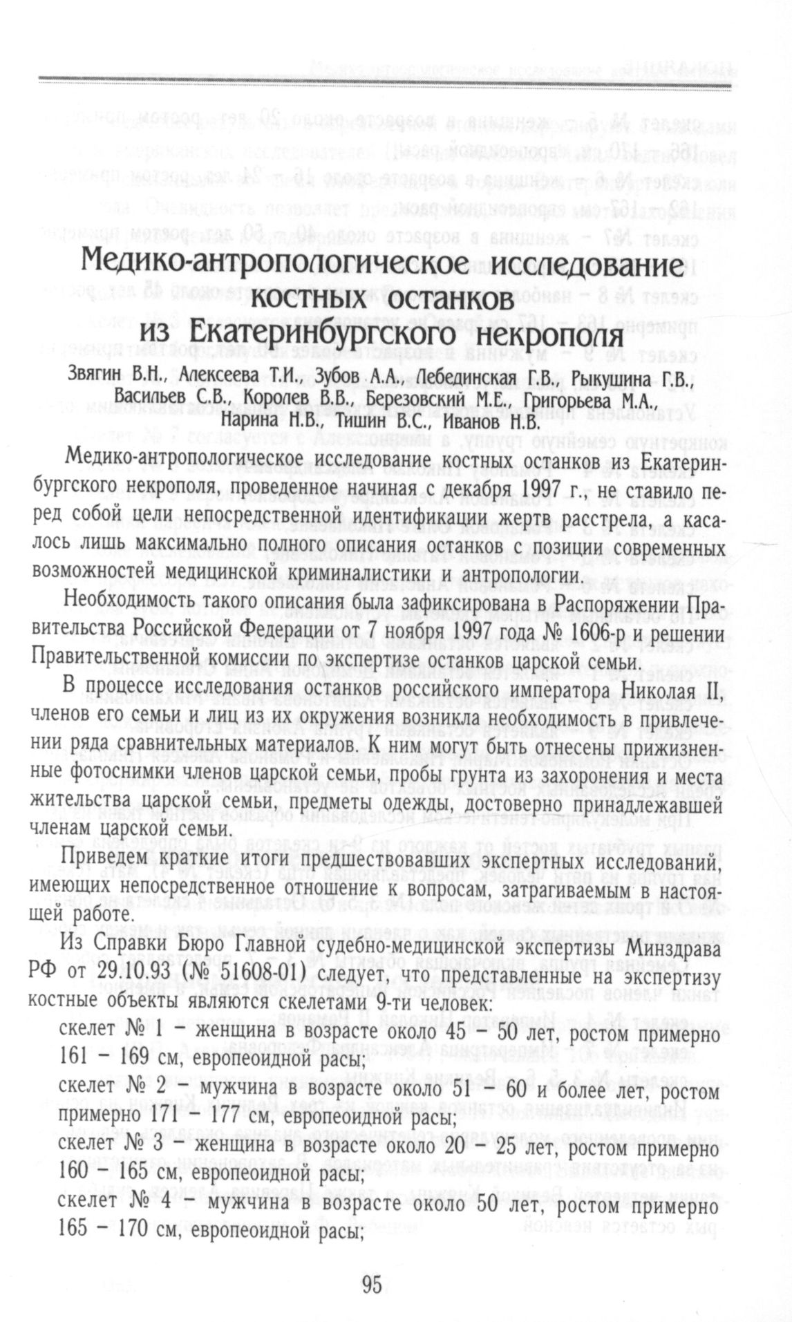 Медико-антропологическое исследование костных останков из Екатеринбургского некрополя