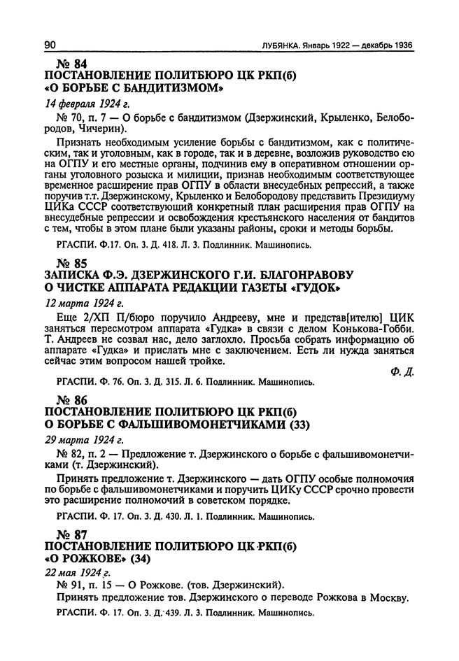 Лубянка. Сталин и ВЧК-ГПУ-ОГПУ-НКВД. Архив Сталина. Документы высших органов партийной и государственной власти. Январь 1922—декабрь 1936. — М.: МФД, 2003.