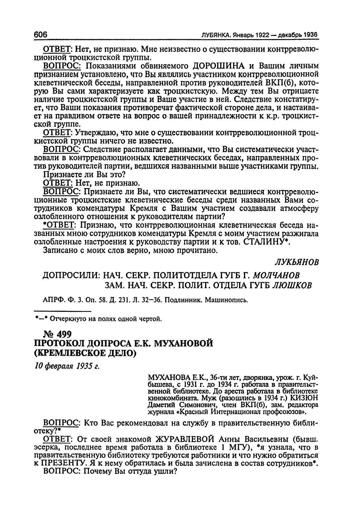 Протокол допроса Е.К. Мухановой (Кремлевское дело). 10 Февраля 1935 г.