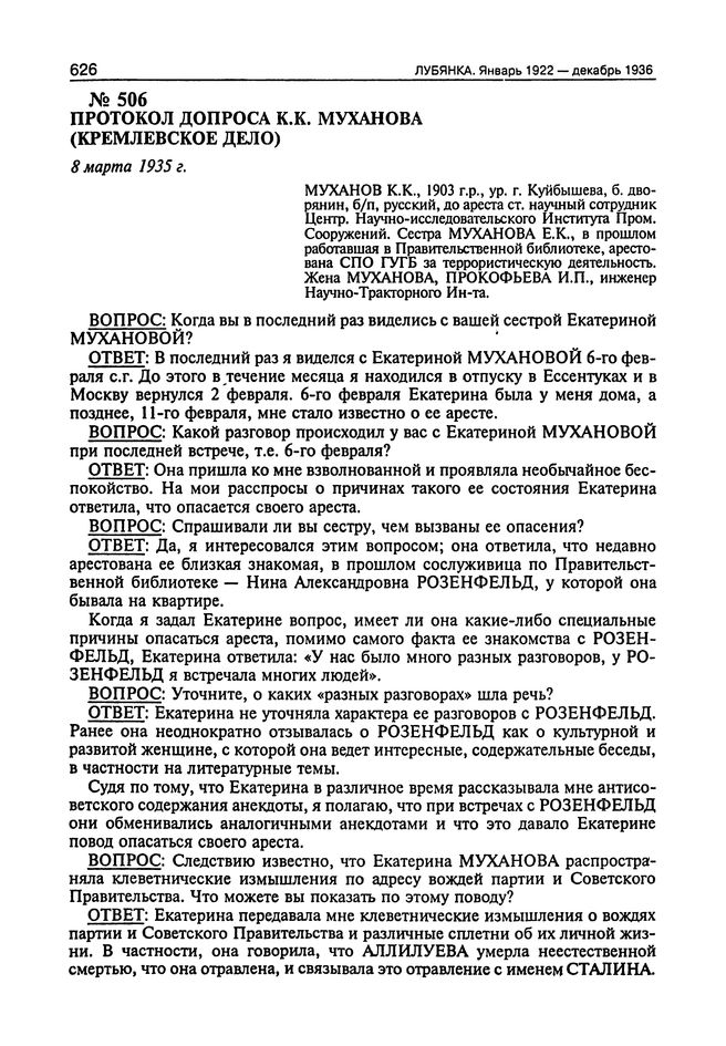Протокол допроса К.К. Муханова (Кремлевское дело). 8 Марта 1935 г.