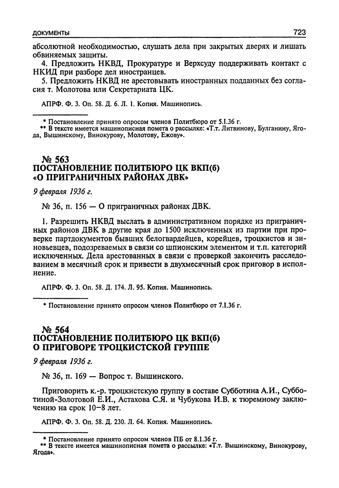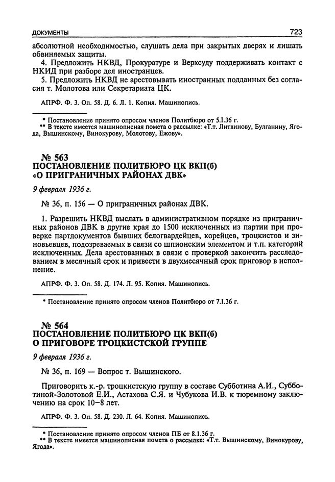 Постановление Политбюро ЦК ВКП(б) о приговоре троцкистской группе. 9 Февраля 1936 г.