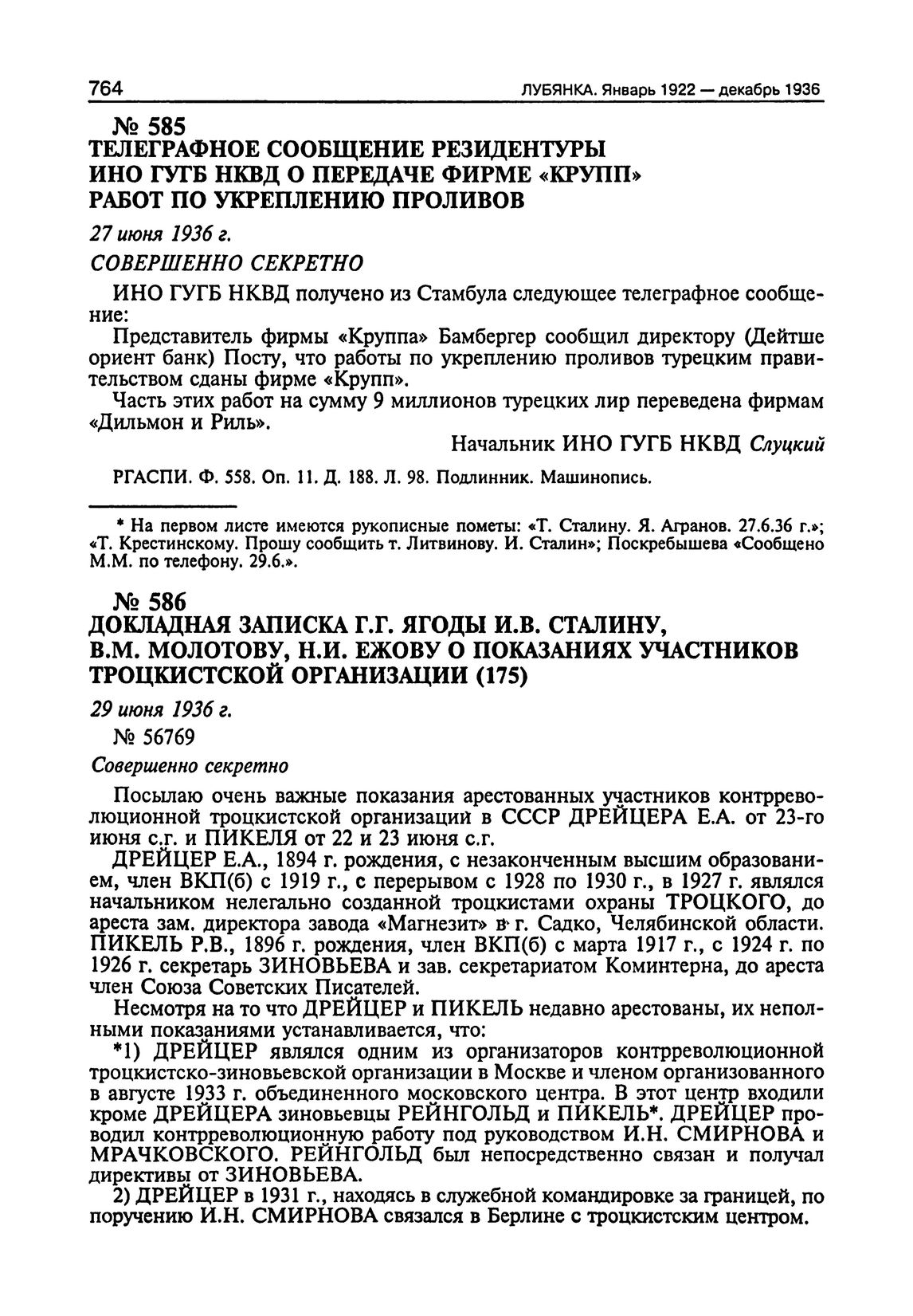 Лубянка. Сталин и ВЧК-ГПУ-ОГПУ-НКВД. Архив Сталина. Документы высших органов партийной и государственной власти. Январь 1922—декабрь 1936. — М.: МФД, 2003.
