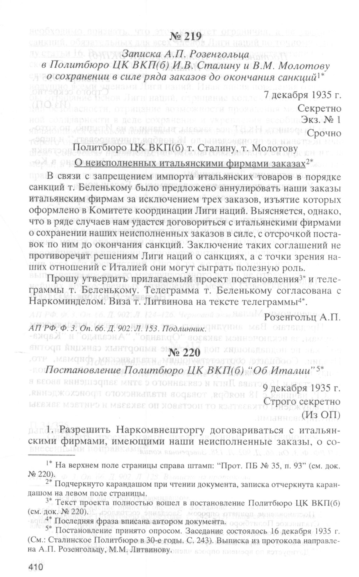 Постановление Политбюро ЦК ВКП(б) “Об Италии”. 9 декабря 1935 г. // АП РФ. Ф. 3. Oп. 66. Д. 902. Л. 151. Выписка из протокола.