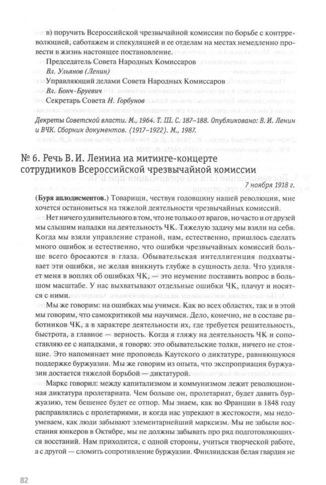 Речь В.И. Ленина на митинге-концерте сотрудников Всероссийской чрезвычайной комиссии. 7 ноября 1918 г. // Ленин В.И. Полн. собр. соч. Т. 37. С. 173-174.