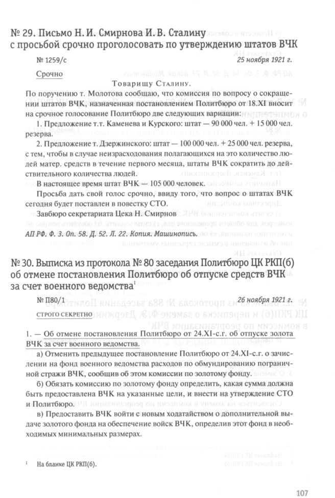 Письмо Н.И. Смирнова И.В. Сталину с просьбой срочно проголосовать по утверждению штатов ВЧК. 25 ноября 1921 г. // АП РФ. Ф. 3. Oп. 58. Д. 52. Л. 22. Копия. Машинопись.