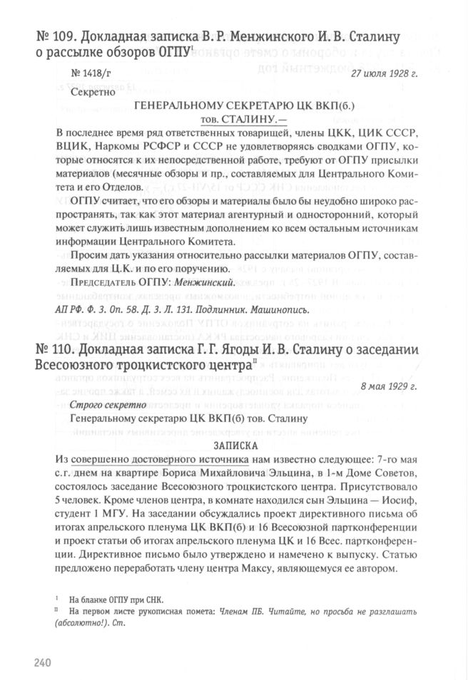 Докладная записка В.Р. Менжинского И.В. Сталину о рассылке обзоров ОГПУ. 27 июля 1928 г. // АП РФ. Ф. 3. Oп. 58. Д. 3. Л. 131. Подлинник. Машинопись.