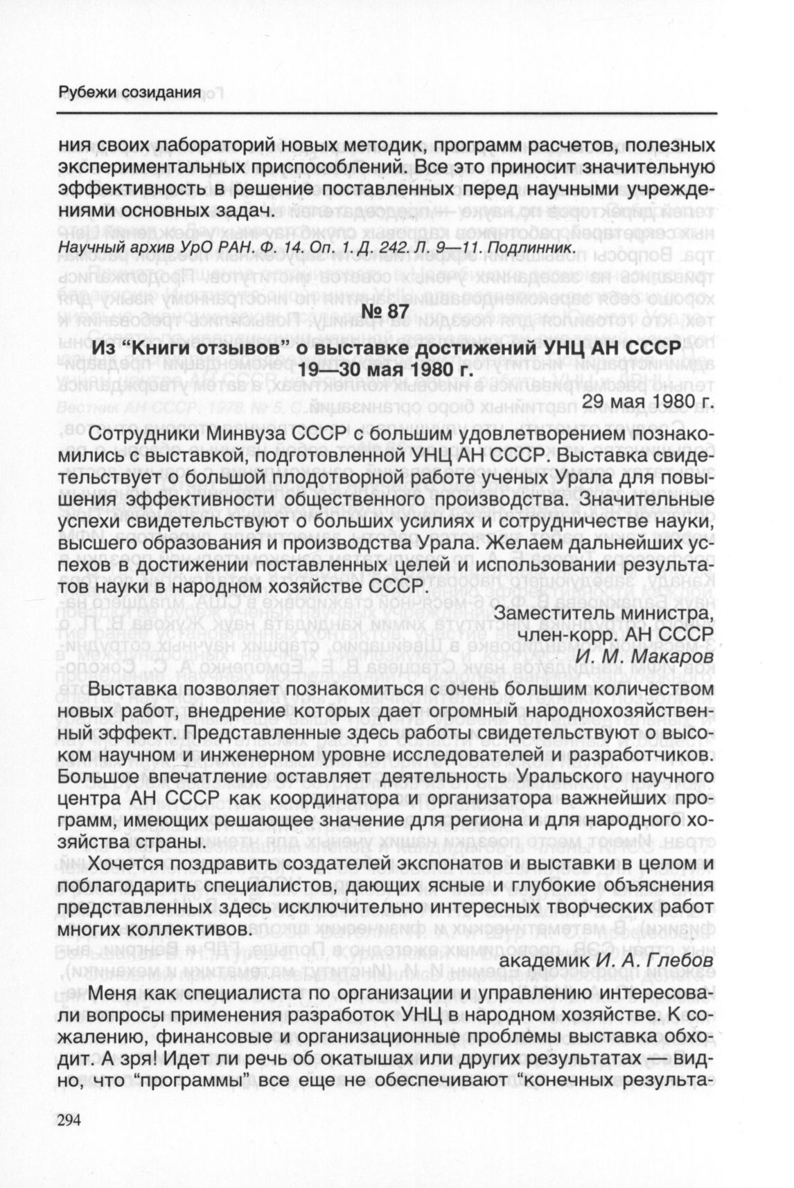 Из “Книги отзывов” о выставке достижений УНЦ АН СССР 19—30 мая 1980 г. 29 мая 1980 г.
