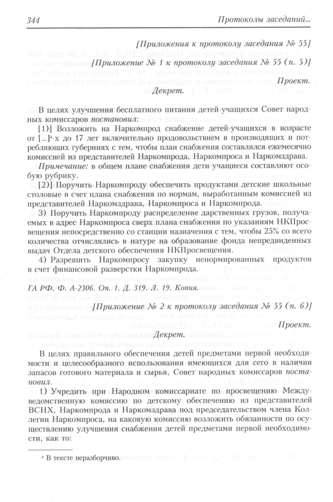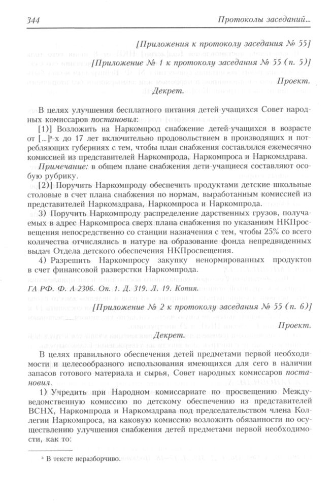 Приложение № 2 к протоколу заседания № 55 (п. 6) Коллегии Народного комиссариата по просвещению РСФСР. Проект. Декрет // ГА РФ. Ф. А-2306. Оп. 1. Д. 319. Л. 20-20 об. Копия.