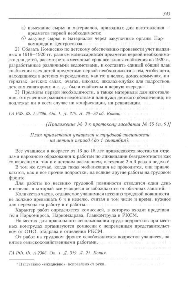Приложение № 3 к протоколу заседания № 55 (п. 9) Коллегии Народного комиссариата по просвещению РСФСР. План привлечения учащихся к трудовой повинности на летний период до 1 сентября // ГА РФ. Ф. А-2306. Оп. 1. Д. 319. Л. 21. Копия.