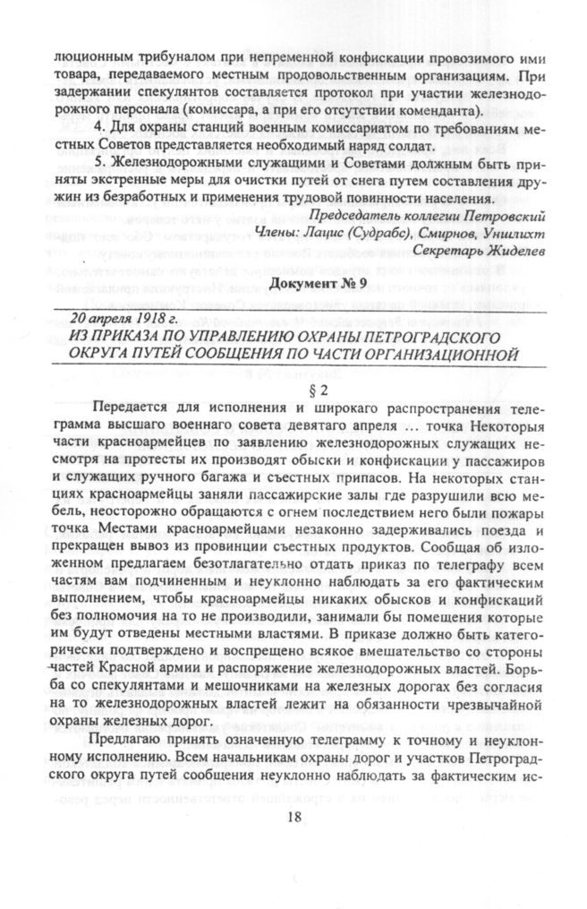 Из приказа по управлению охраны Петроградского округа путей сообщения по части организационной. 20 апреля 1918 г. // Санкт-Петербургский Центральный Гос. архив. ф. 76. оп. 1. д. 1. л. 8.