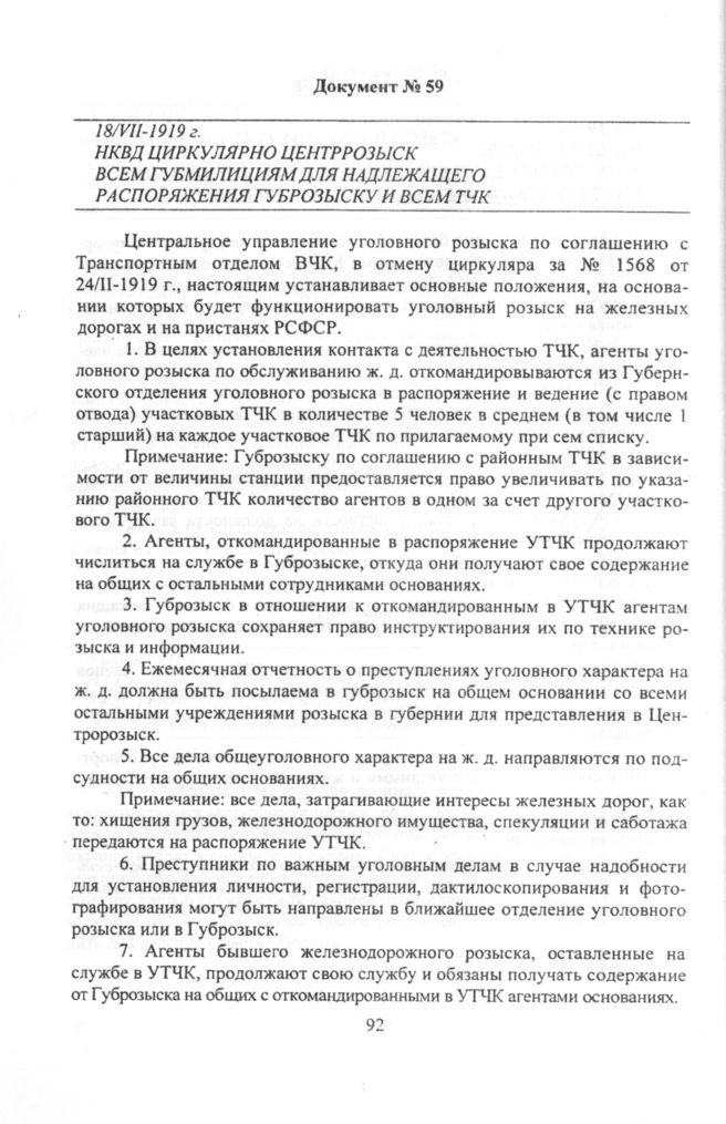 Центррозыск всем губмилициям для надлежащего распоряжения губрозыску и всем тчк. 18/VII-1919 г. // ГА РФ.. ф. р-393. oп. 15. д. 1а. л. 98-99.
