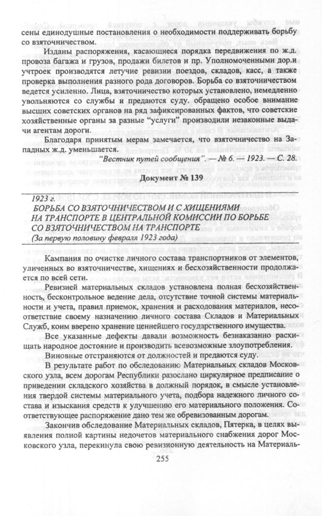 Борьба со взяточничеством и с хищениями на транспорте в Центральной Комиссии по борьбе со взяточничеством на транспорте. 1923 г. // «Вестник путей сообщения». — № 8. — 1923. — С. 31.