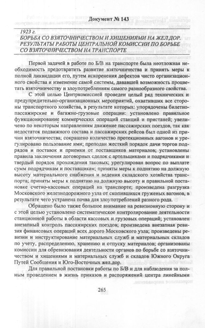 Борьба со взяточничеством и хищениями на жел.дор. Результаты работы Центральной Комиссии по борьбе со взяточничеством на транспорте. 1923 г. // «Вестник путей сообщения». — № 17. — 1923. — С. 17.