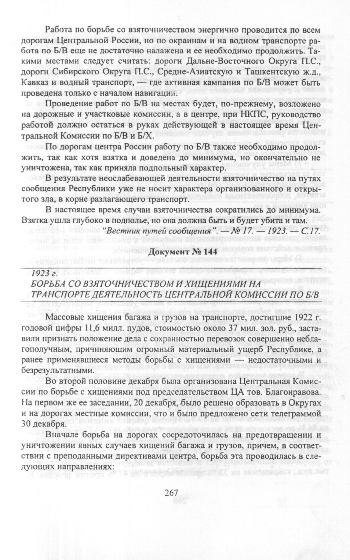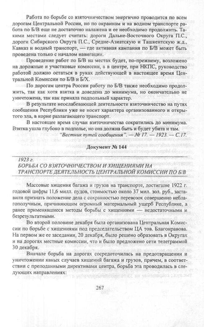 Борьба со взяточничеством и хищениями на транспорте. Деятельность Центральной Комиссии по б/в. 1923 г.