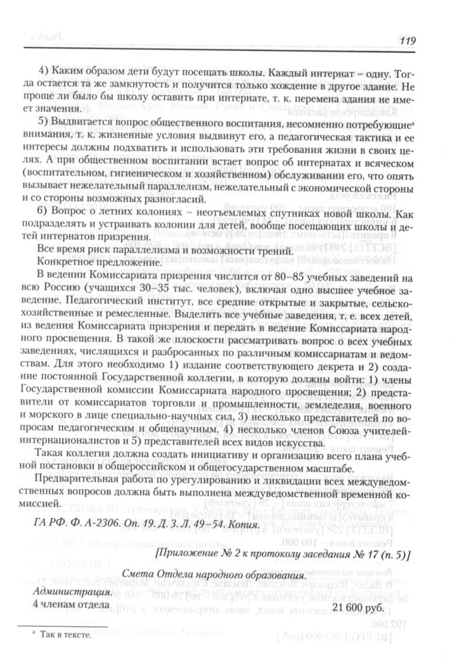Приложение № 2 к протоколу заседания Большой государственной комиссии по просвещению Народного комиссариата по просвещению РСФСР № 17 (п. 5). Смета Отдела народного образования