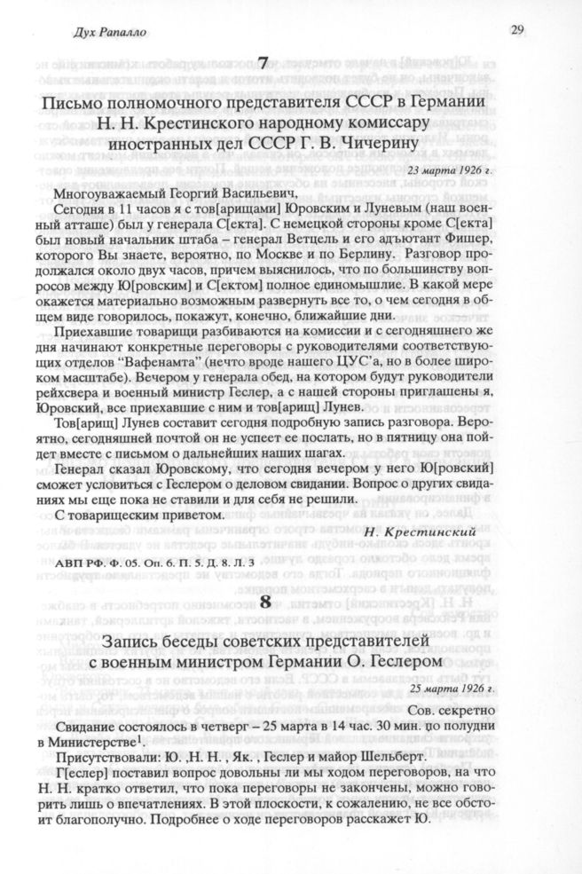 Письмо полномочного представителя СССР в Германии Н. Н. Крестинского народному комиссару иностранных дел СССР Г. В. Чичерину. 23 марта 1926 г. // АВП РФ. Ф. 05. Оп. 6. п. 5. Д. 8. Л. 3.
