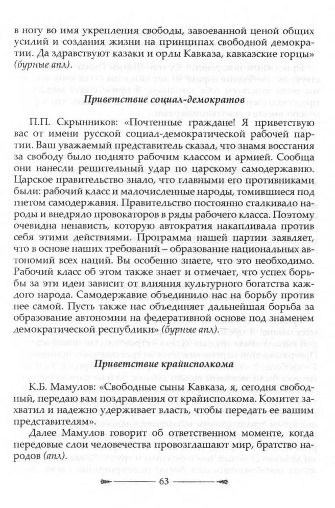 Первый съезд горцев Кавказа (протокол). Владикавказ. Второй день съезда - 2 мая 1917 г. Приветствие социал-демократов