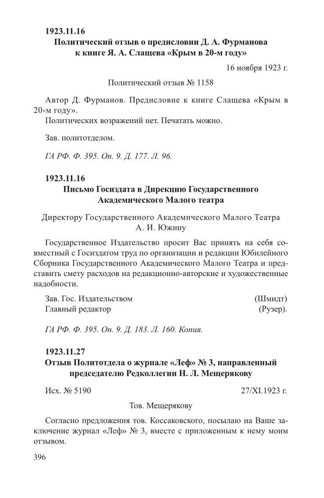 Письмо Госиздата в Дирекцию Государственного Академического Малого театра. 16 ноября 1923 г. // ГА РФ. Ф. 395. Оп. 9. Д. 183. Л. 160. Копия.