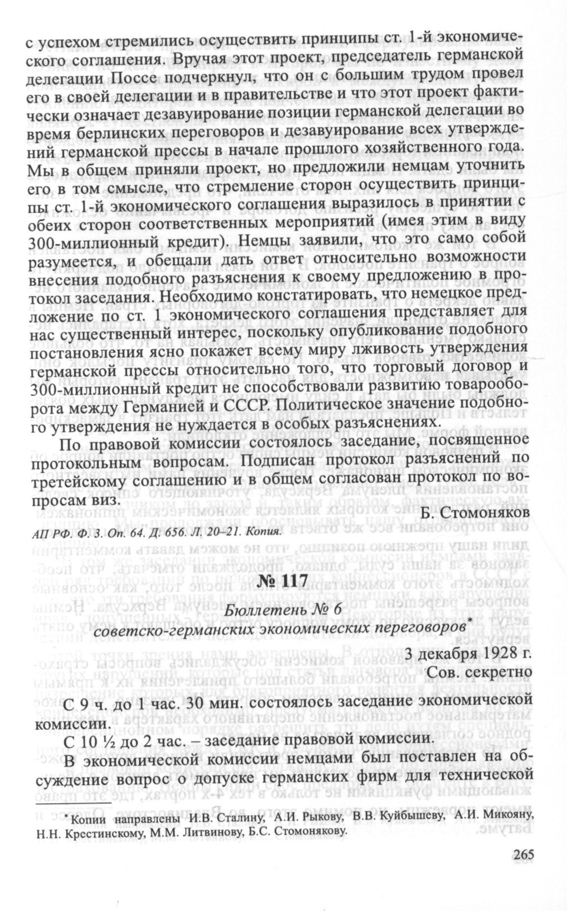 Бюллетень № 6 советско-германских экономических переговоров. 3 декабря 1928 г. // АП РФ. Ф. 3. Oп. 64. Д. 65. Л. 25-26. Копия.