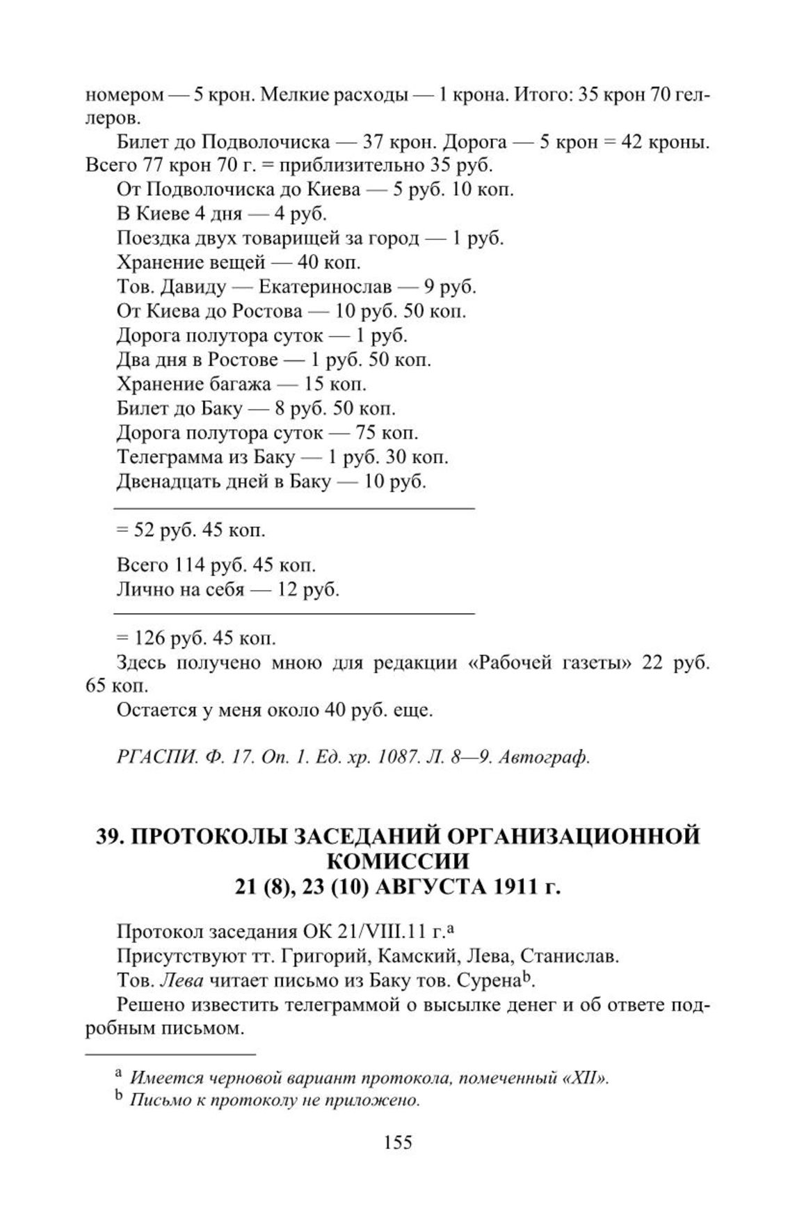 Протоколы заседания Организационной комиссии. 21 (8), 23 (10) августа 1911 г.