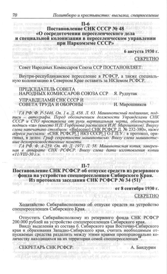 Главная Серия «Архивы Кремля» Политбюро и крестьянство: высылка, спецпоселение. 1930—1940: В 2 кн. Политбюро и крестьянство: высылка, спецпоселение. 1930—1940: В 2 кн... Документы Постановление СНК РСФСР об отпуске средств из резервного фонда на у...