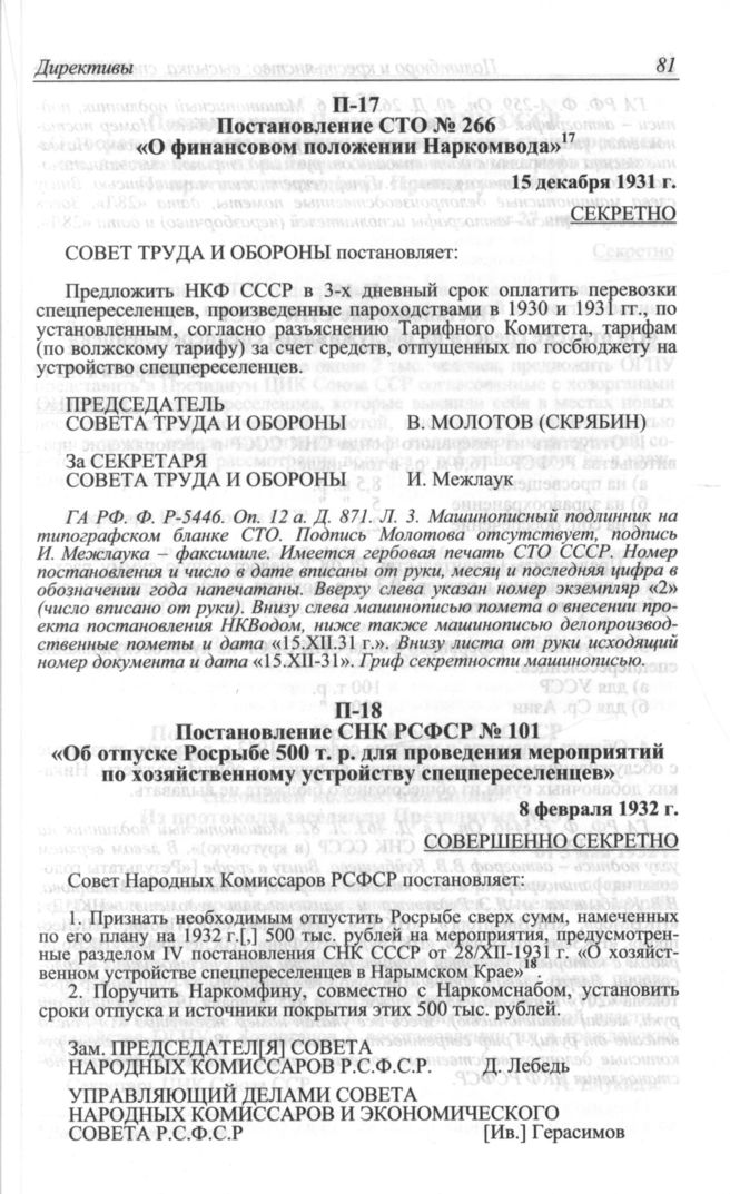 Политбюро и крестьянство: высылка, спецпоселение. 1930—1940: В 2 кн. Кн. 2. — М.: РОССПЭН, 2006.