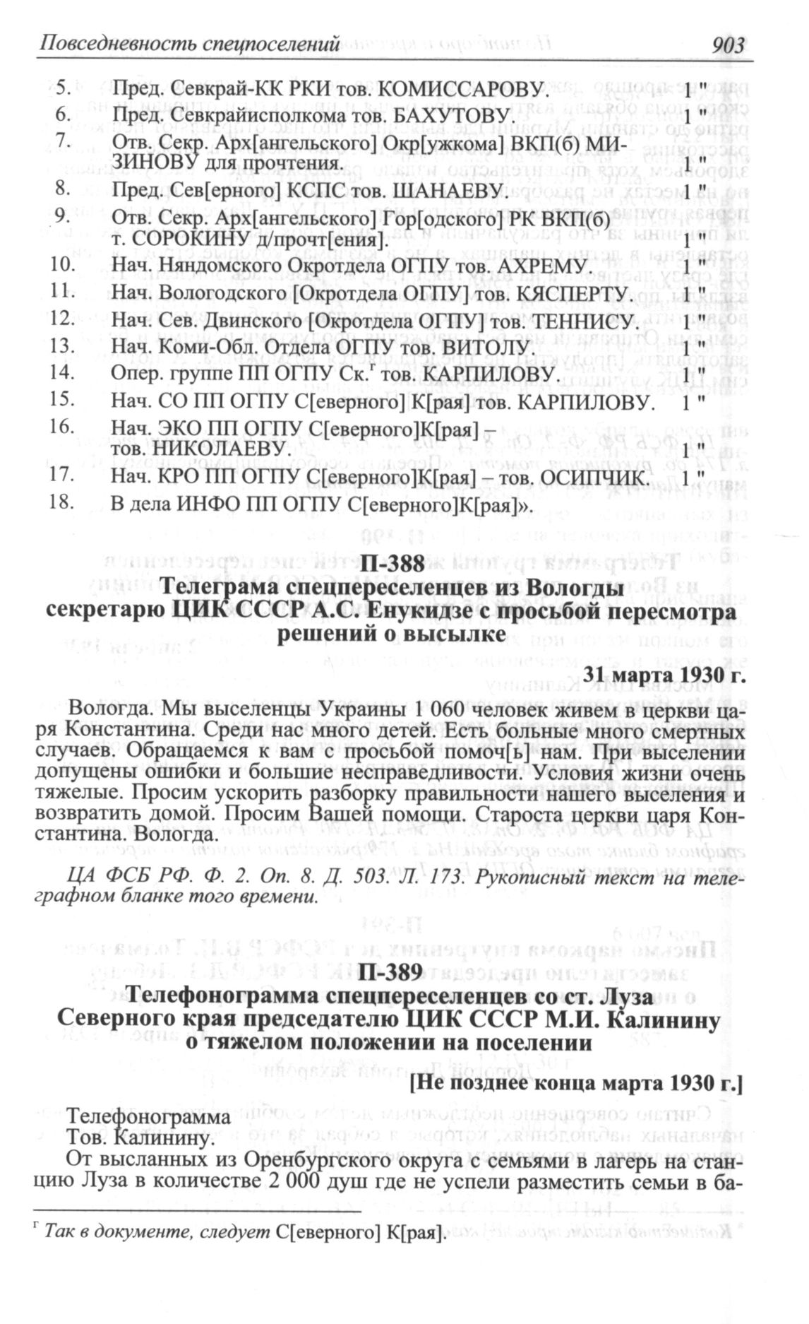Политбюро и крестьянство: высылка, спецпоселение. 1930—1940: В 2 кн. Кн. 2. — М.: РОССПЭН, 2006.