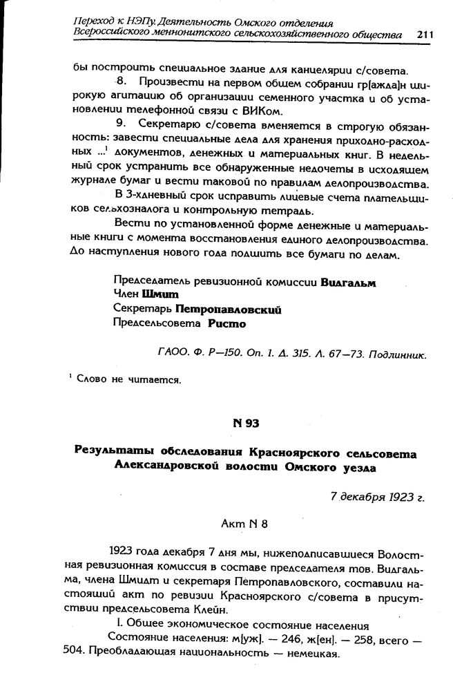 Результаты обследования Красноярского сельсовета Александровской волости Омского уезда. 7 декабря 1923 г. // ГАОО. Ф. P-150. Oп. 1. Д. 315. Л. 60-66. Подлинник.