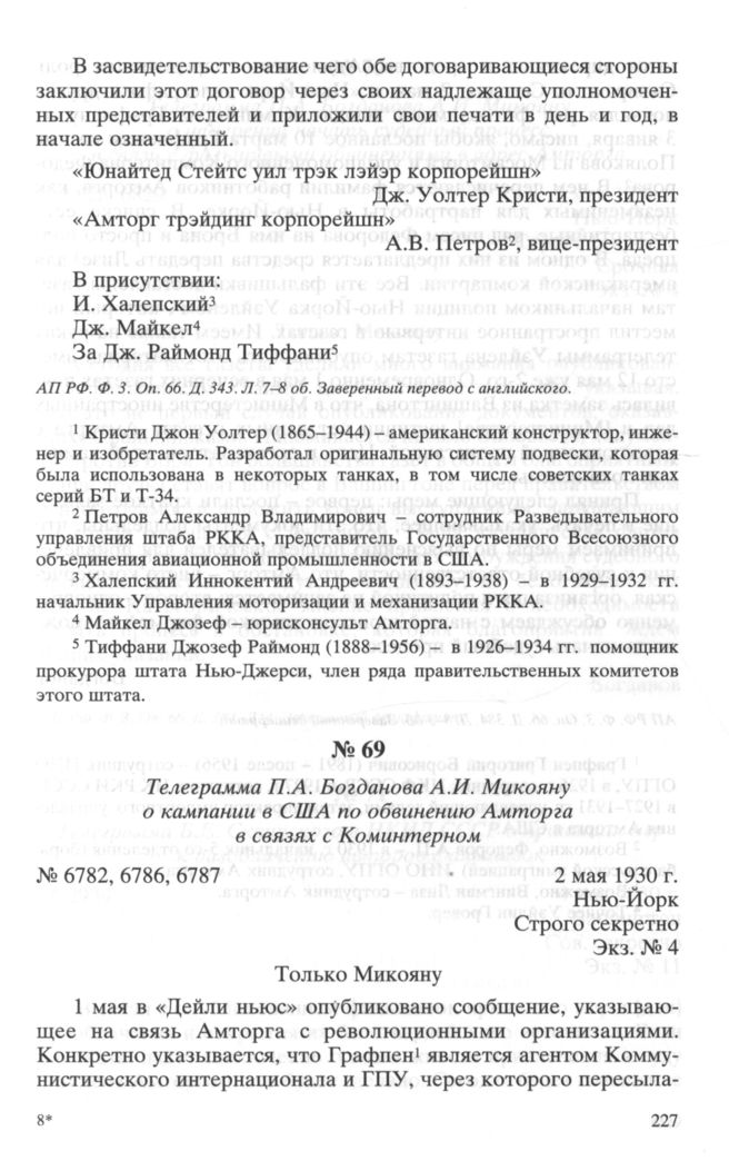 Телеграмма П.А. Богданова А.И. Микояну о кампании в США по обвинению Амторга в связях с Коминтерном. 2 мая 1930 г.