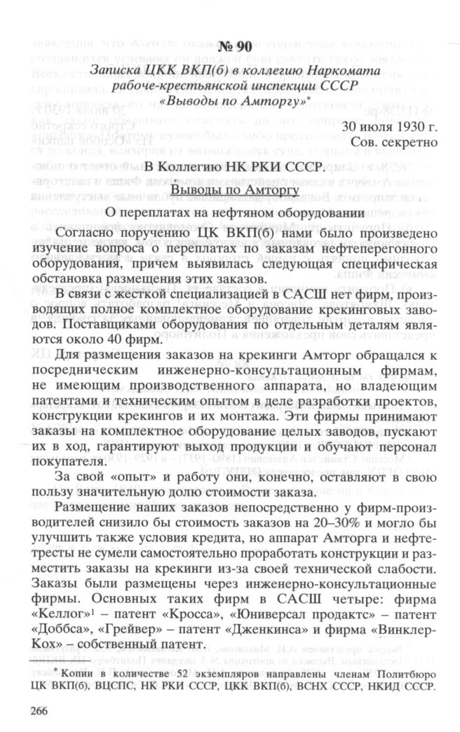 Записка ЦКК ВКП(б) в коллегию Наркомата рабоче-крестьянской инспекции СССР «Выводы по Амторгу». 30 июля 1930 г. // АП РФ. Ф. 3. Оп. 66. Д. 276. Л. 81-84. Копия.
