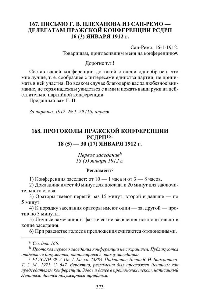Протоколы Пражской конференции РСДРП. 18 (5)—30 (17) января 1912 г. // РГАСПИ. Ф. 37. Оп. 1. Ед. хр. 7. Подлинник (протоколы). Вопросы истории КПСС. 1988. № 5, 6, 7; Коммунист. 1988. № 5, 6.