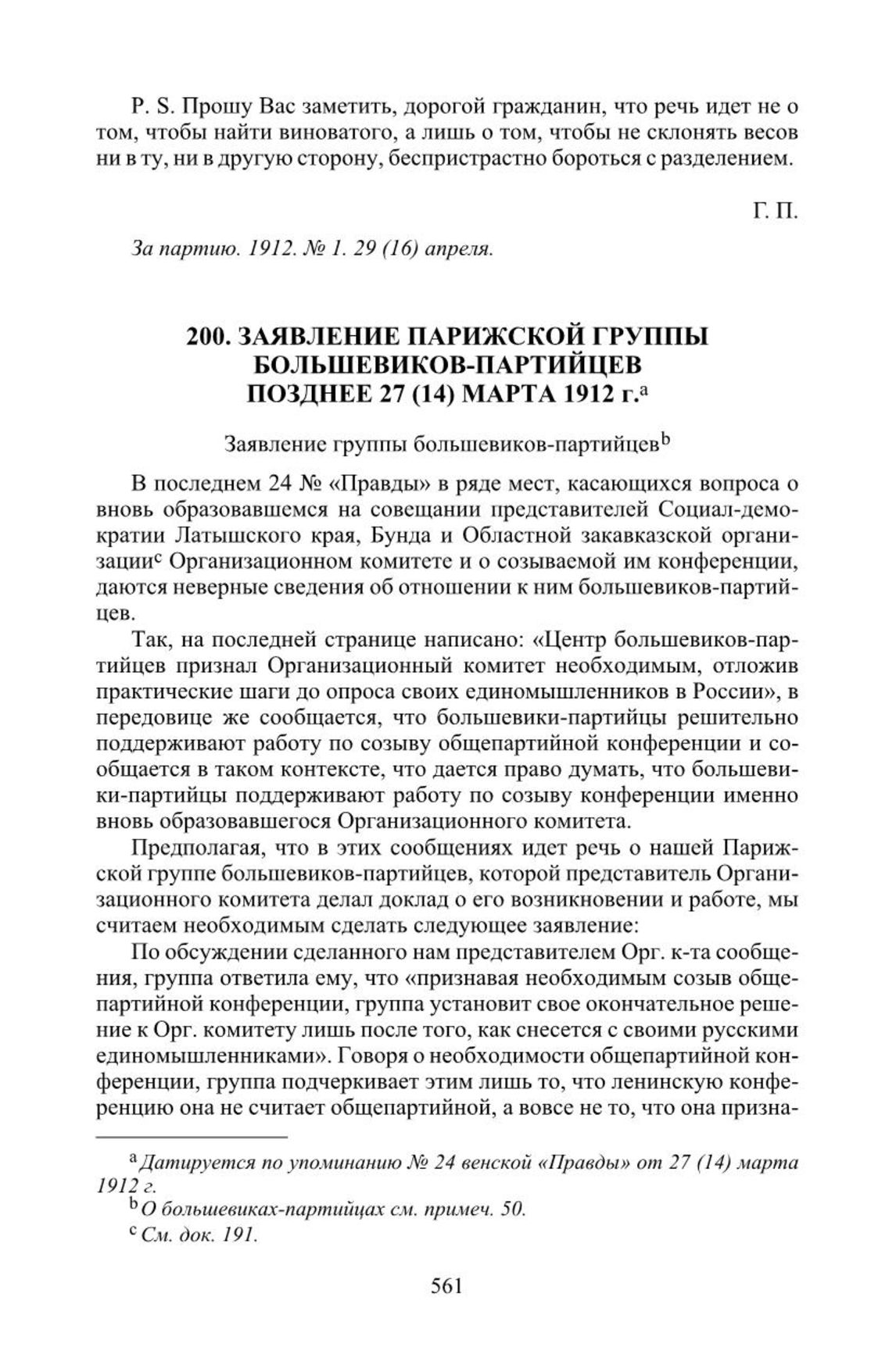 Заявление Парижской группы большевиков-партийцев. Позднее 27 (14) марта 1912 г. // За партию. 1912. № 1. 29 (16) апреля.