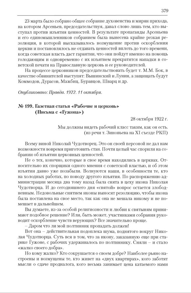 Газетная статья «Рабочие и церковь» (Письма с «Гужона»). 28 октября 1922 г. // Правда. 1922. 28 октября.