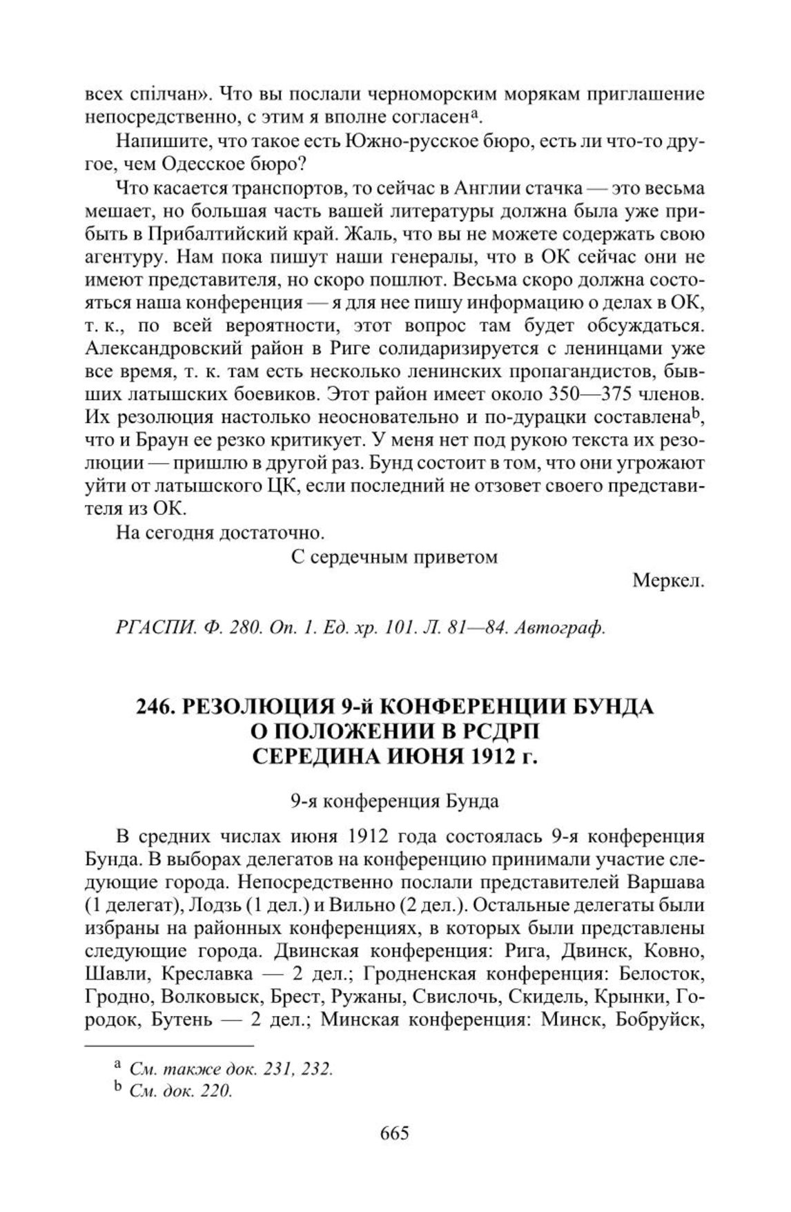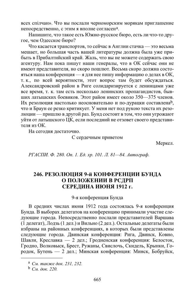 Резолюция 9-й конференции Бунда о положении в РСДРП. Середина июня 1912 г. // Листок ОК. 1912. № 4. 29 (16) августа. РГАСПИ. Ф. 325. Оп. 2. Ед. хр. 11. Л. 94