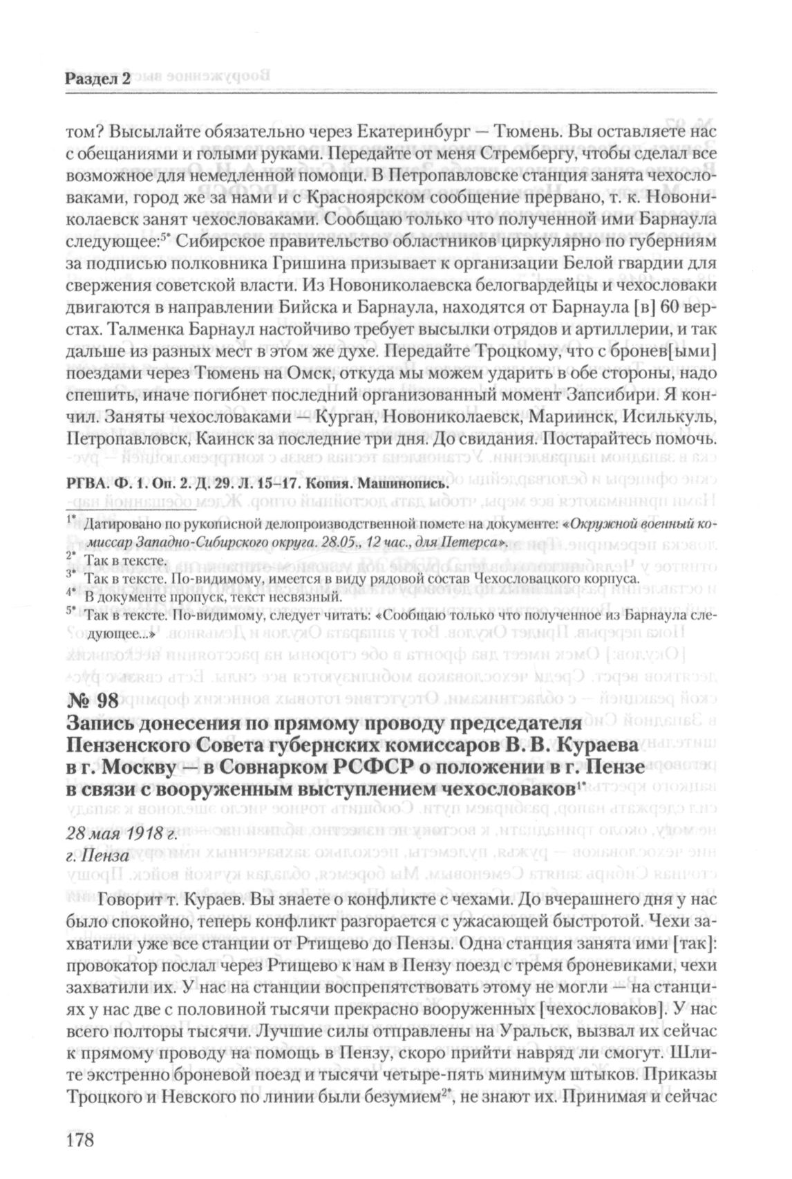 Запись донесения по прямому проводу председателя Пензенского Совета губернских комиссаров В.В. Кураева в г. Москву — в Совнарком РСФСР о положении в г. Пензе в связи с вооруженным выступлением чехословаков. 28 мая 1918 г. // ГА РФ. Р-130. Оп. 2. Д. 583. Л. 89. Копия. Машинопись.