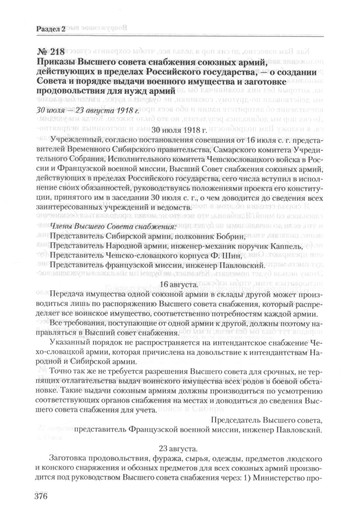Приказы Высшего совета снабжения союзных армий, действующих в пределах Российского государства, — о создании Совета и порядке выдачи военного имущества и заготовке продовольствия для нужд армий. 30 июля — 23 августа 1918 г. // ГА РФ. Ф. 200. Oп. 1. Д. 152. Л. 26. Типографский экз.