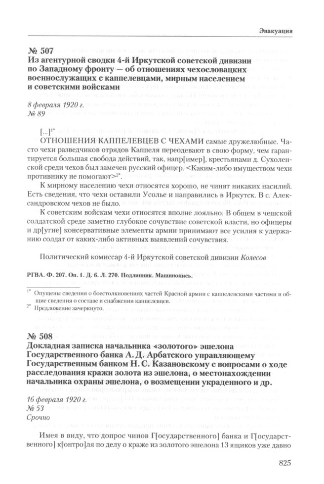 Из агентурной сводки 4-й Иркутской советской дивизии по Западному фронту — об отношениях чехословацких военнослужащих с каппелевцами, мирным населением и советскими войсками. 8 февраля 1920 г.