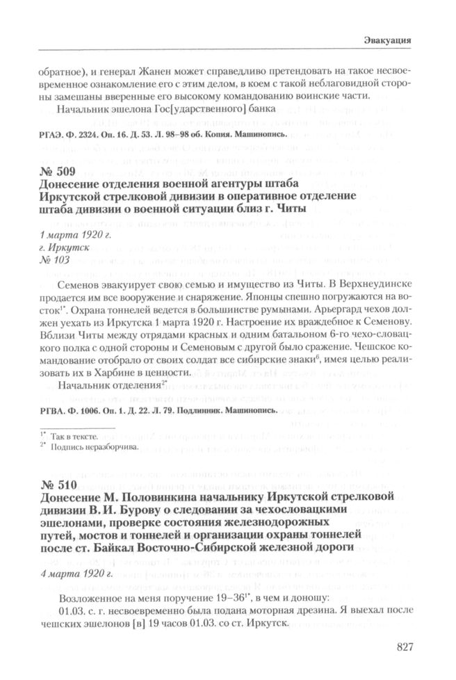 Донесение М. Половинкина начальнику Иркутской стрелковой дивизии В.И. Бурову о следовании за чехословацкими эшелонами, проверке состояния железнодорожных путей, мостов и тоннелей и организации охраны тоннелей после ст. Байкал Восточно-Сибирской железной дороги. 4 марта 1920 г. // РГВА. Ф. 1006. Oп. 1. Д. 22. Л. 70-70 об. Подлинник. Рукопись.