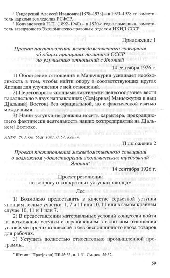 Проект постановления межведомственного совещания об общих принципах политики СССР по улучшению отношений с Японией. 14 сентября 1926 г. // АП РФ. Ф. 3. Oп. 66. Д. 1043. Л. 57. Копия.