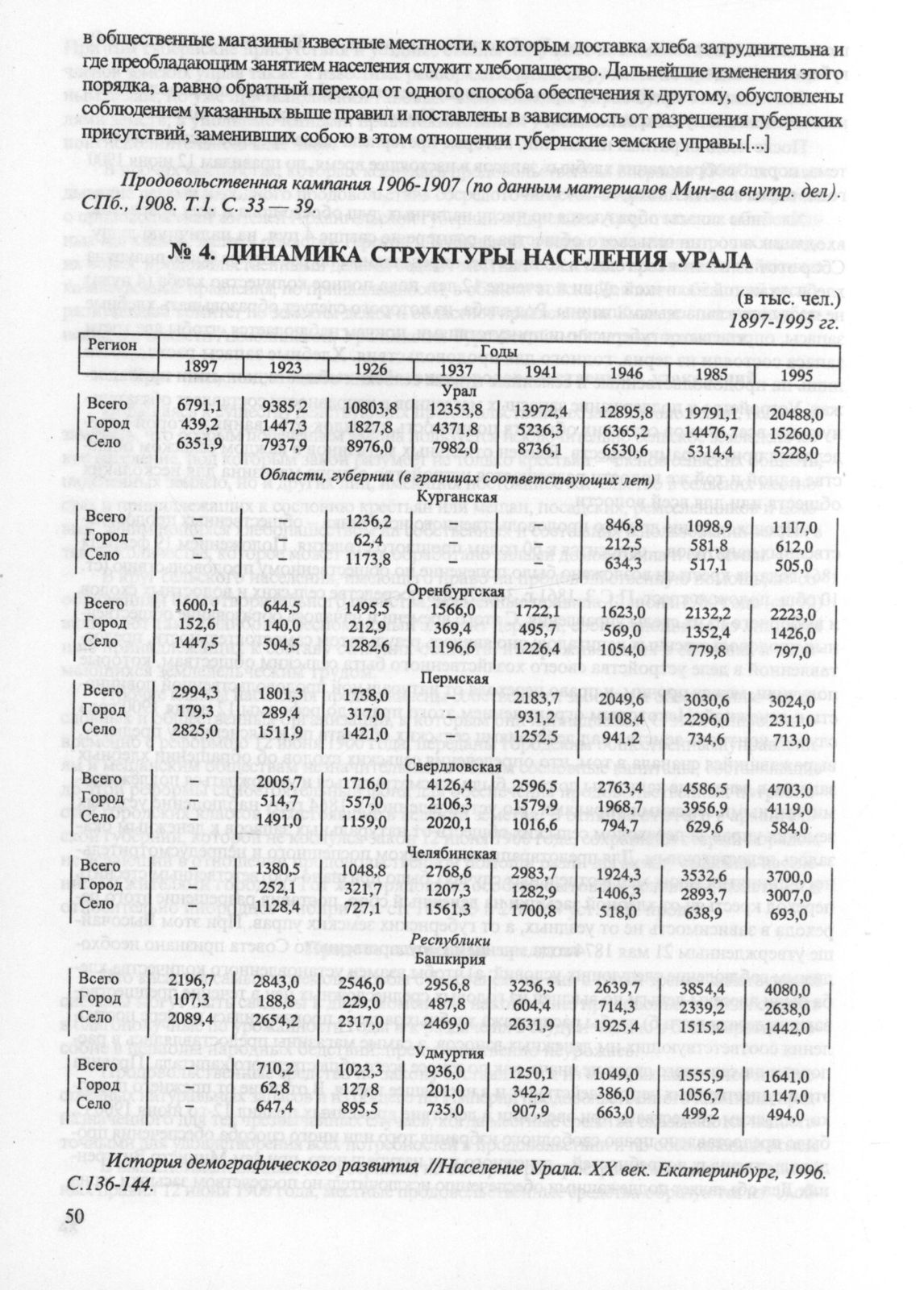 Динамика структуры населения Урала, 1897-1995 гг. // История демографического развития // Население Урала. XX век. Екатеринбург, 1996. С.136-144.