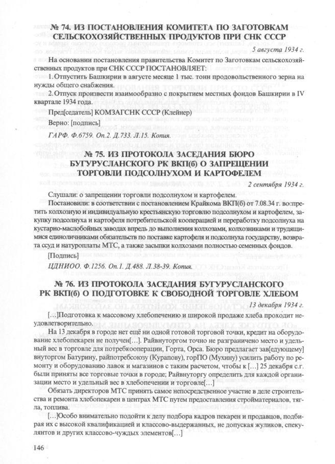Из протокола заседания бюро Бугурусланского РК ВКП(б) о запрещении торговли подсолнухом и картофелем, 2 сентября 1934 г. // ЦДНИОО. Ф. 1256. Оп. 1. Д. 488. Л. 38-39. Копия.