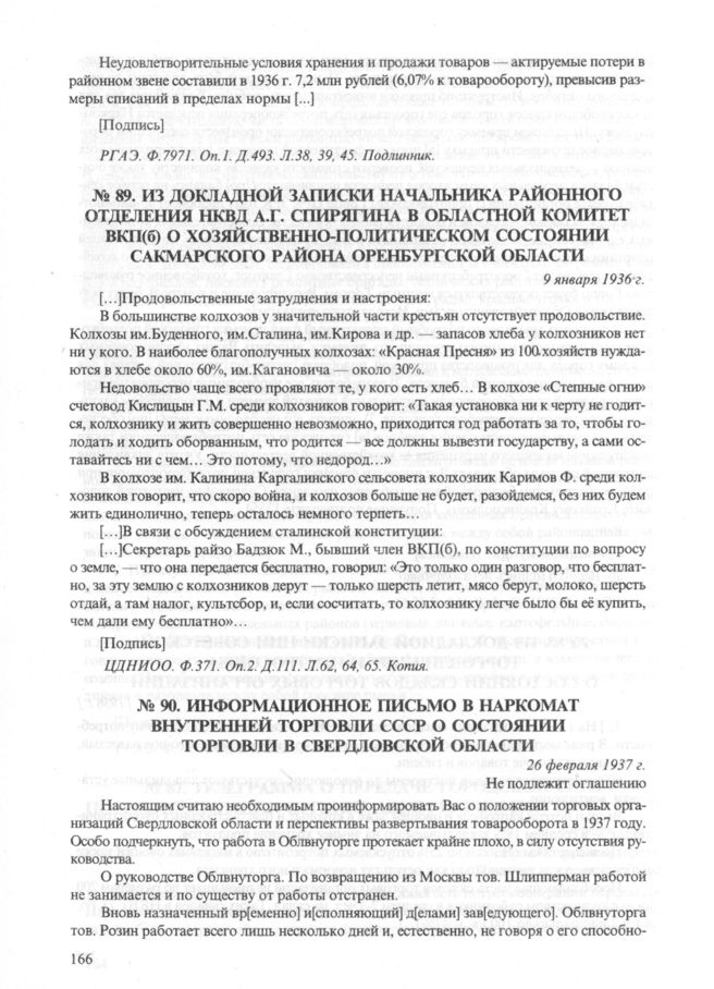 Информационное письмо в Наркомат Внутренней Торговли СССР о состоянии торговли в Свердловской области, 26 февраля 1937 г. // РГАЭ. Ф. 7971. Оп. 1. Д. 492. Л. 1-5 об. Подлинник.