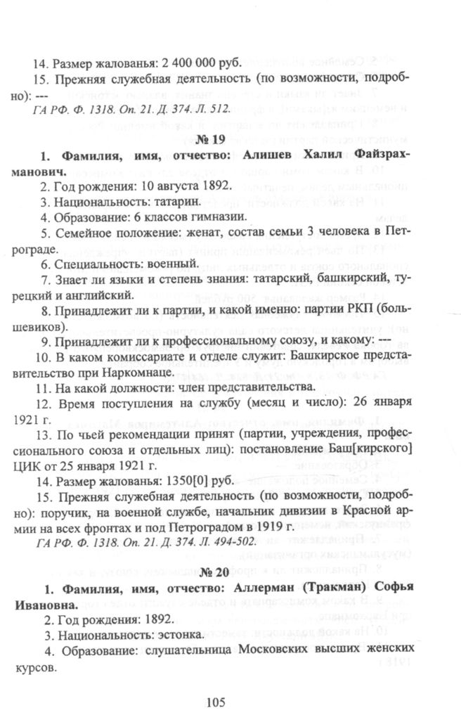 Аллерман (Тракман) Софья Ивановна. Анкета ответственного работника Наркомнаца // ГА РФ. Ф. 1318. Oп. 21. Д 374. Л. 464-475.