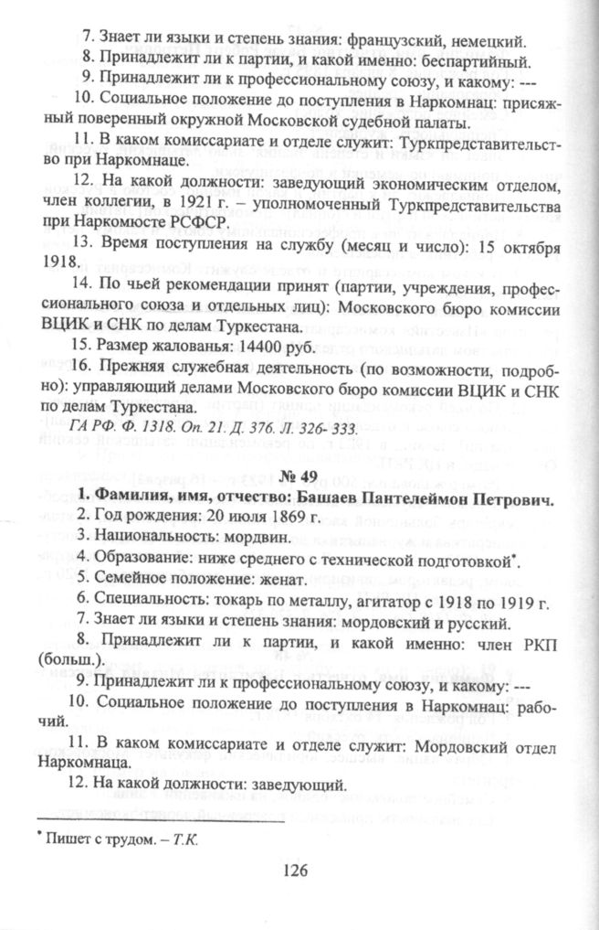 Башаев Пантелеймон Петрович. Анкета ответственного работника Наркомнаца