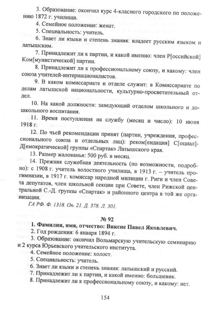 Виксне Павел Яковлевич. Анкета ответственного работника Наркомнаца // ГА РФ. Ф. 1318. Oп. 21. Д. 378. Л. 311.