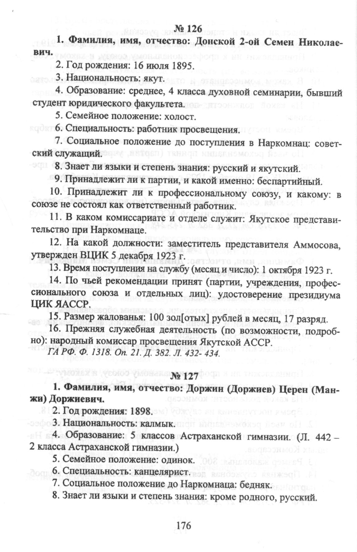 Донской 2-ой Семен Николаевич. Анкета ответственного работника Наркомнаца // ГА РФ. Ф. 1318. Oп. 21. Д. 382. Л. 432-434.