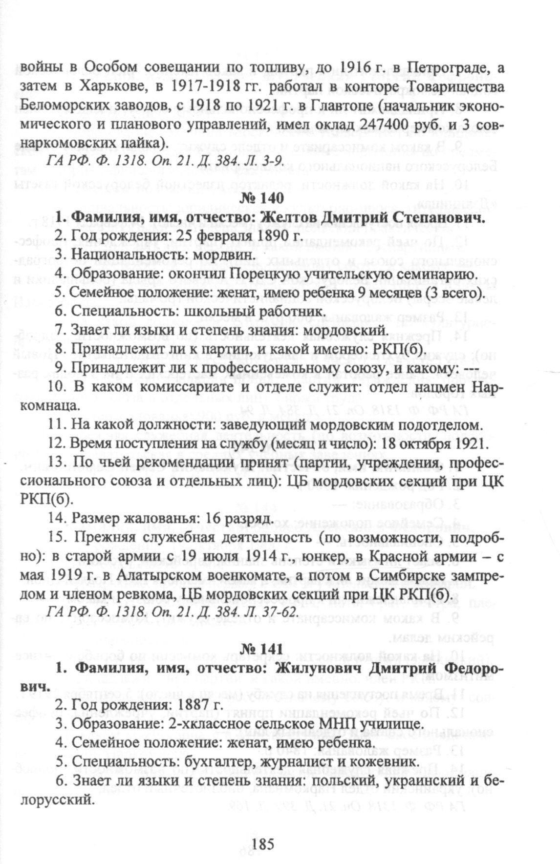 Желтов Дмитрий Степанович. Анкета ответственного работника Наркомнаца // ГА РФ. Ф. 1318. Oп. 21. Д. 384. Л. 37-62.