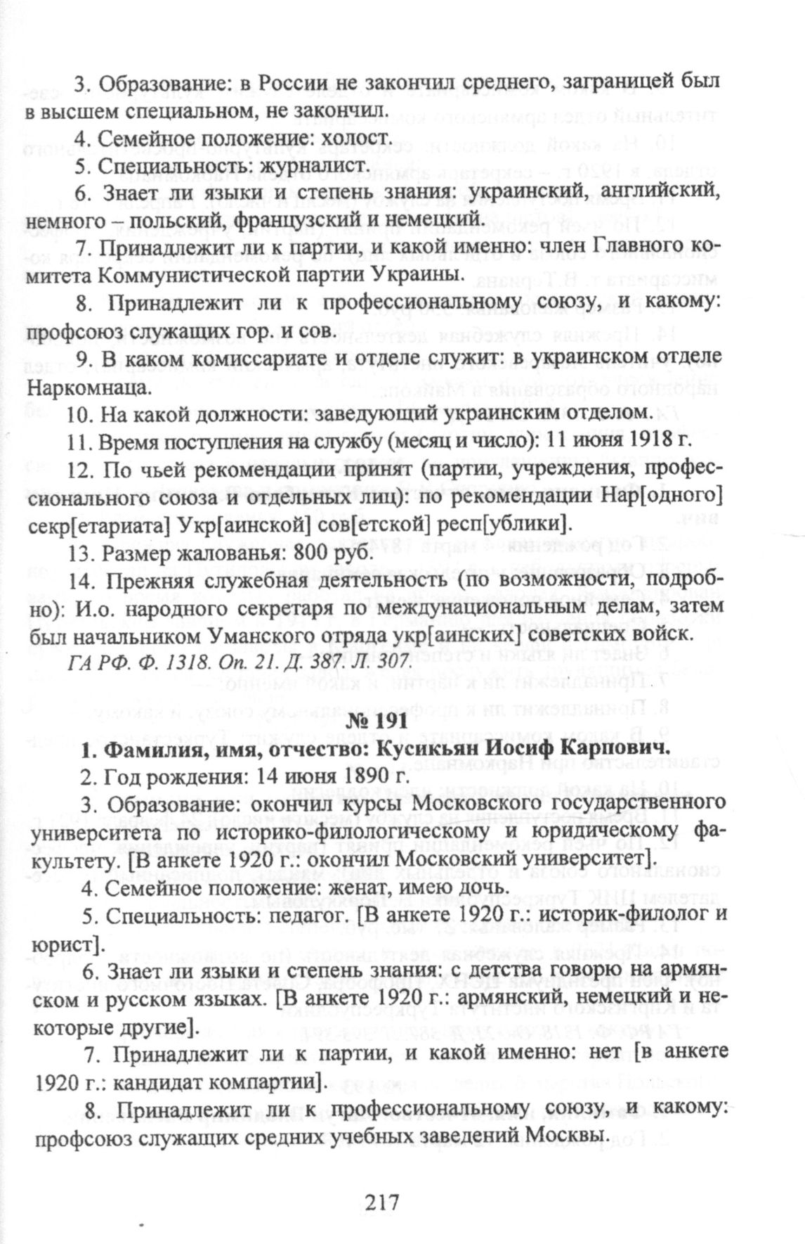 Кусикьян Иосиф Карпович. Анкета ответственного работника Наркомнаца