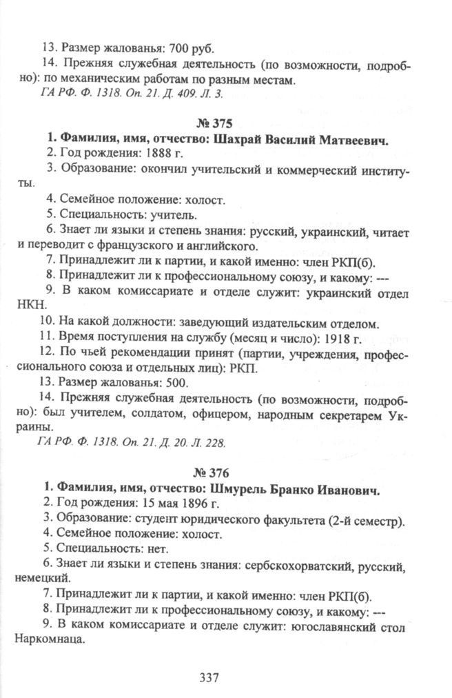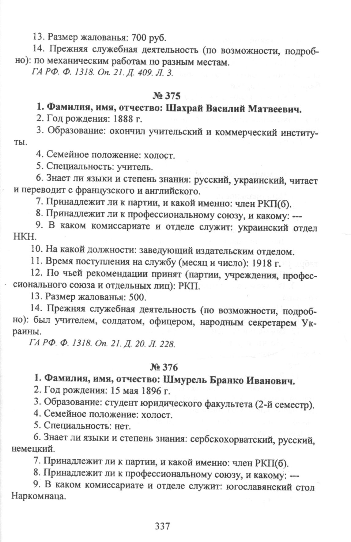 Шахрай Василий Матвеевич. Анкета ответственного работника Наркомнаца // ГА РФ. Ф. 1318. Oп. 21. Д 20. Л. 228.