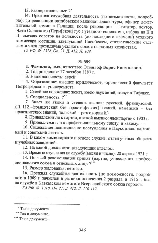 Этингоф Борис Евгеньевич. Анкета ответственного работника Наркомнаца // ГА РФ. Ф. 1318. Oп. 21. Д. 412. Л. 110-112.
